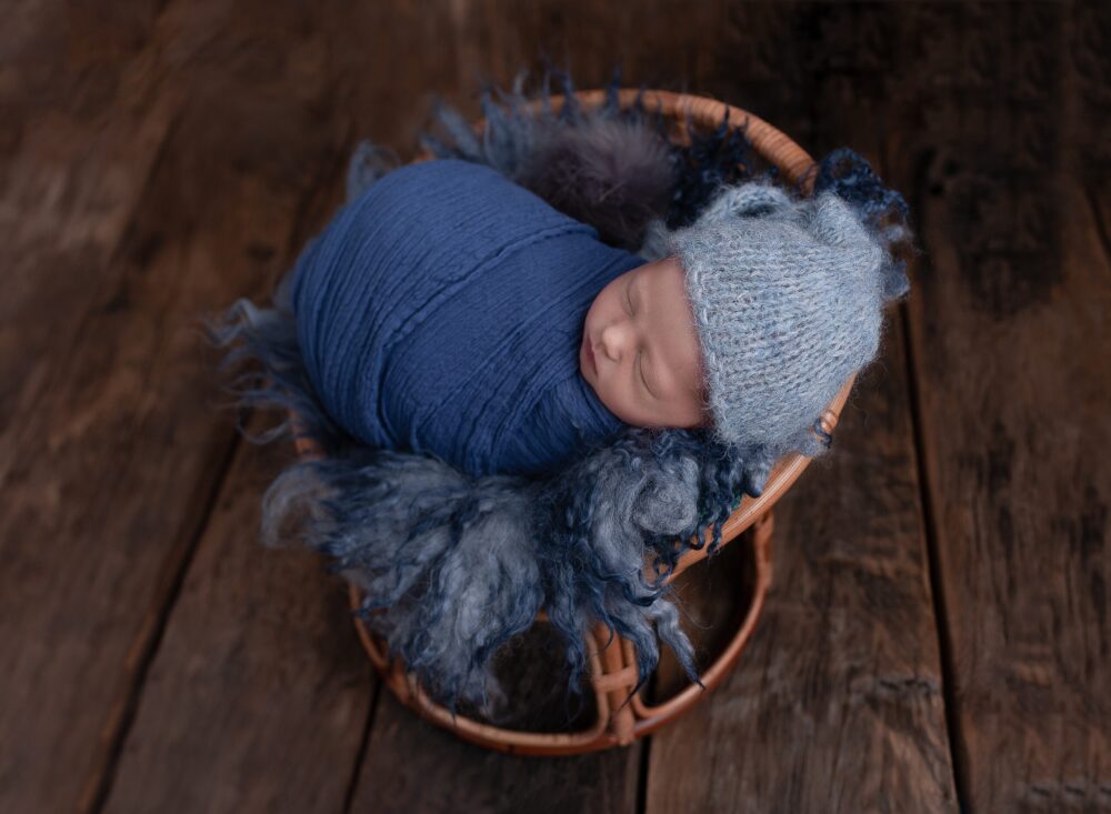 Boy, do babies love a swaddle. So as I am coming to the end of photographing your images on the beanbag I will swaddle your baby and move on to images using some of my many props. If we need to stop for an additional feed that is not a  problem. As I have mentioned before I always listen to what your baby needs throughout your time at the Samphire studios.