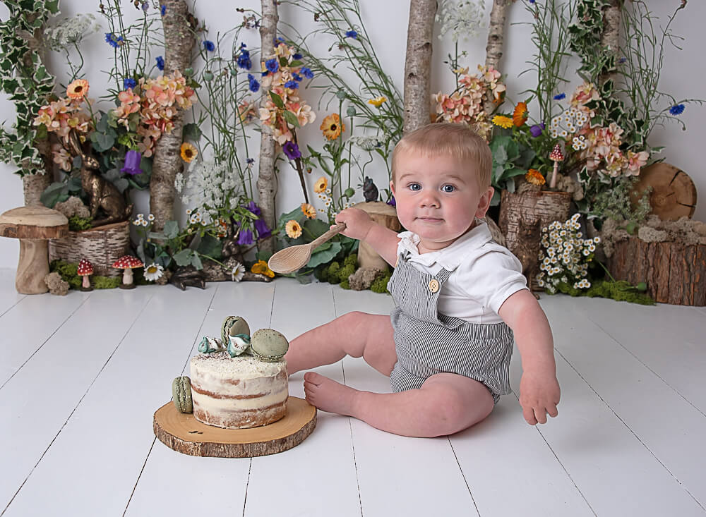 woodland theme cake smash photographer surrey
