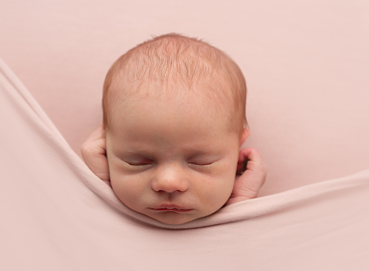 When the gorgeous Ava Rose came into the studio she was 9 days old for her Newborn Portraits Broadbridge Heath. So she was the perfect age for newborn portraits. It’s during the first two weeks after birth that we have the maximum opportunity to capture all those adorable curled-up, sleepy baby images. And that is exactly what we did. With newborn photography, some poses are positioned with expert, gentle handling. Some are created by carefully editing a composite image, after the photoshoot. Rest assured, baby’s safety and comfort is paramount at all times. No photograph, no matter how adorable, is more important than your newborn.