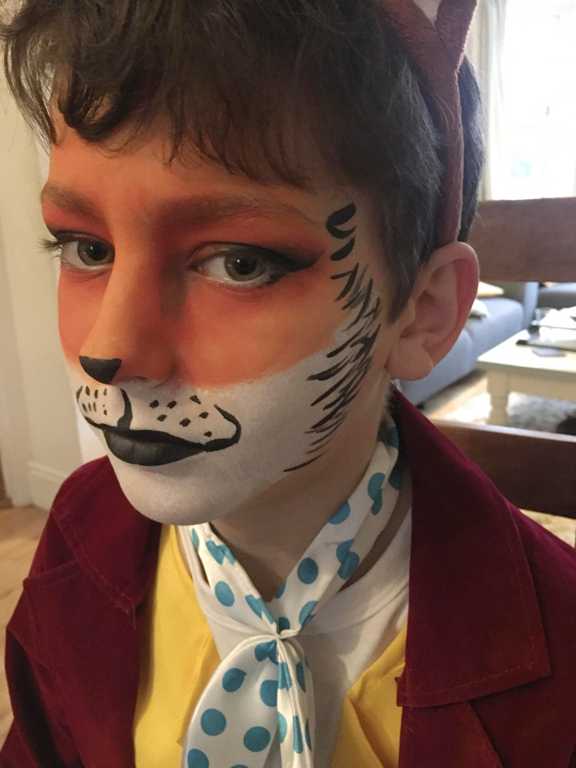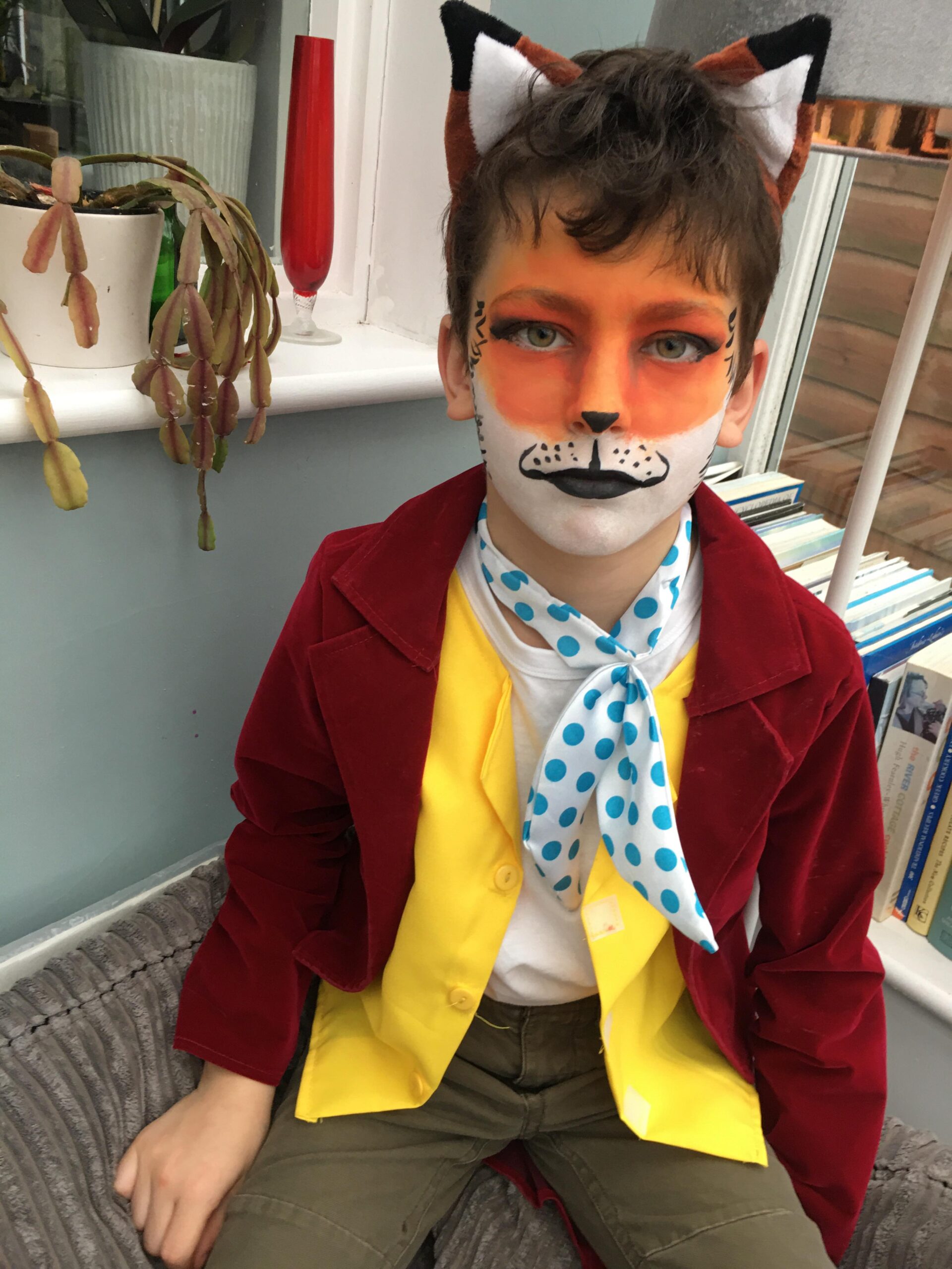 This is my favourite tip of all time. Go through the wardrobes of all those family members and ask all your Mum friends. Failing that just get on social media and put a shout out for anything you need. You will be surprised what people have at home. I am all for recycling and this is definitely a win in my book. Last year saw my son Dylan re-use an outfit from my assistant’s fox-loving son, who had already dressed up as Fantastic Mr Fox on more than one World Book Day. Add a spot of face paint and bingo. Excuse the grumpy face, I told him not to smile!!!
